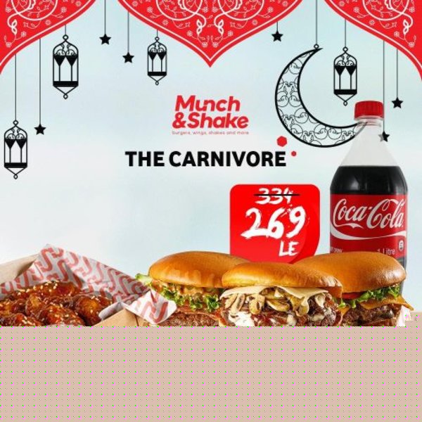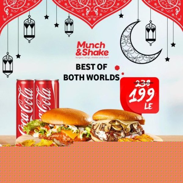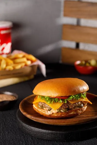 Original burger, smokey burger, shrooms burger, 8 wings pieces with dip of your choice and coca cola liter