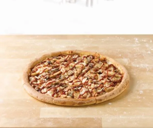 Grilled chicken, onion, fresh mushroom and BBQ sauce drizzled on top