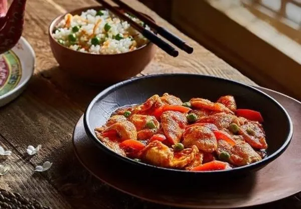 With spicy tomato sauce and oyster, served with fried rice with vegetables or steamed rice