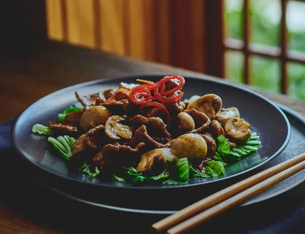 76- Beef with Creamy Teriyaki Sauce and Mushroom