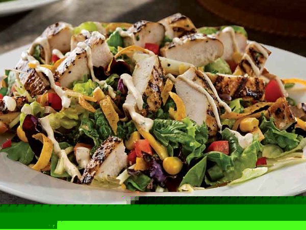 Crispy chicken slices, tortilla crunchy, lettuce, salad, pico de gallo salad, vinaigrette sauce