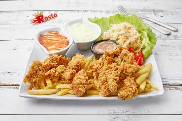 Mix Chicken MealShish, kofta, boneless turkey, rice, fries, coleslaw, garlic dip, bread |