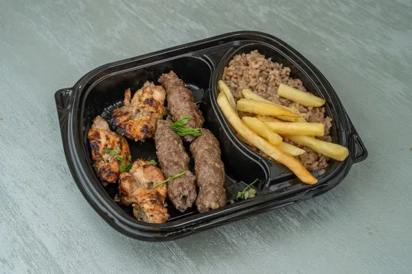 Served with your choice of spiced rice or spaghetti with sauteed vegetables or fries with tahini or garlic dip