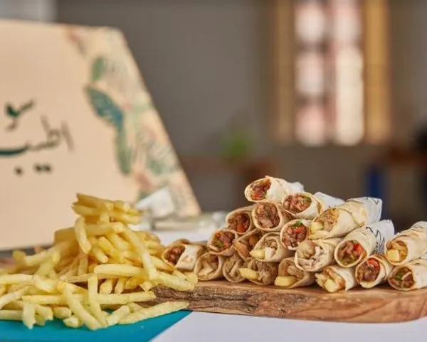 Sausage with potato, spicy potato, mix safayeh, mini shawerma mix, hummus salad, for 2 to 4 persons