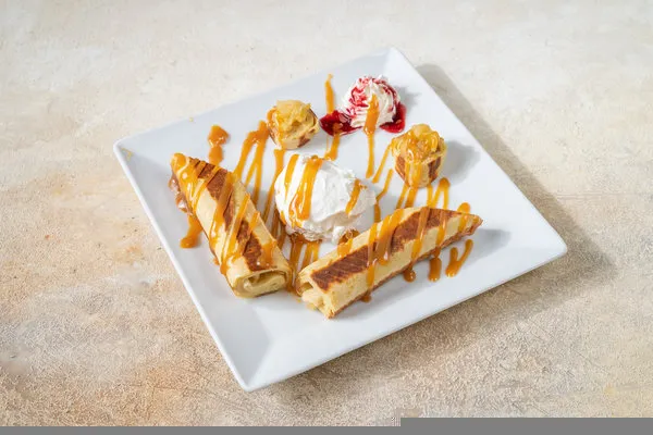 Served with your choice of caramel sauce, chocolate, blueberry, strawberry or cherry