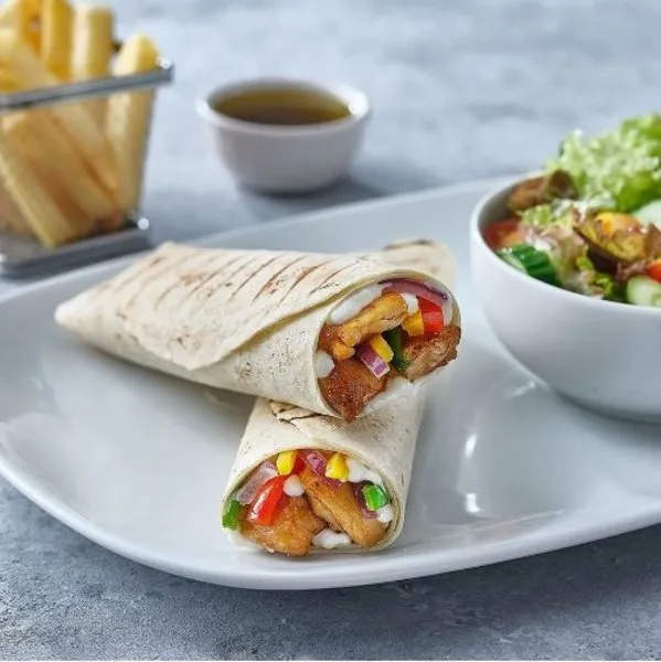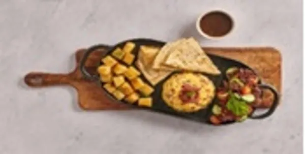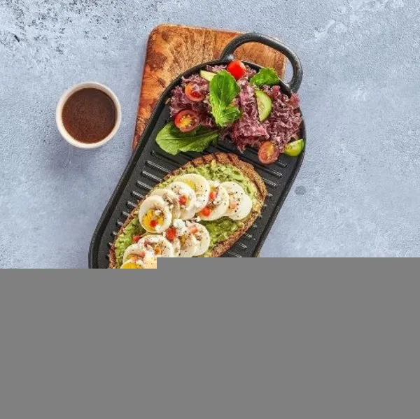 Scrambled eggs, with pastrami and fresh tomato served with our grilled tortilla and roasted potato and side of fresh green salad