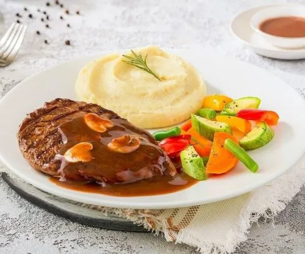 Omelette stuffed with our fresh vegetables, onion, mushroom, tomato and cheddar cheese, served with roasted potato and side of fresh green salad