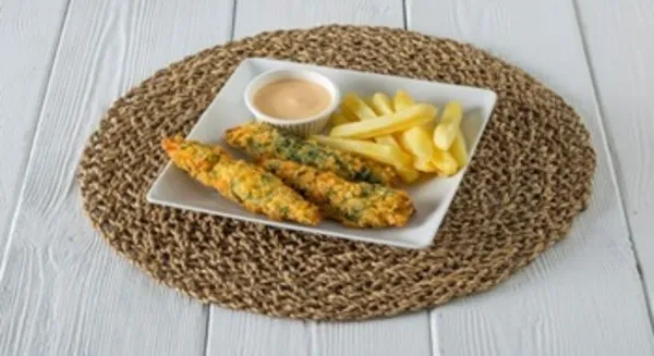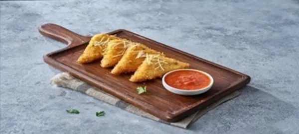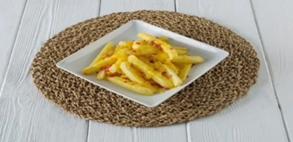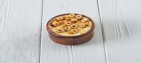 Our rich French toast filled with caramelized bananas and topped with white honey, almond and pinch of cinnamon, served with fresh fruits