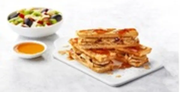 Freshly baked croissant filled with pastry cream and topped with your choice of strawberry sauce or caramel sauce
