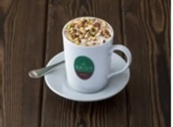 Freshly baked croissant stuffed and topped with nutella and mixed nuts