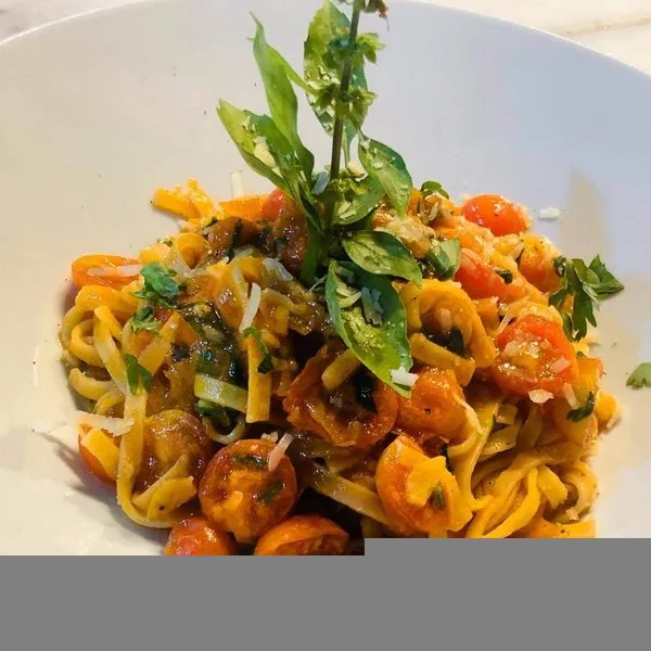 Sapori tomato sauce, onions, organic cherry tomato, Italian basil, homemade mozzarella cheese