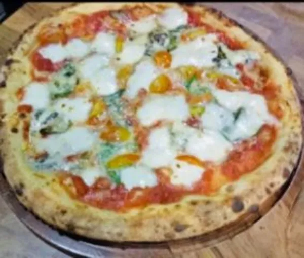 Sapori tomato sauce, homemade mozzarella cheese, organic cherry tomato, Italian basil and extra virgin olive oil