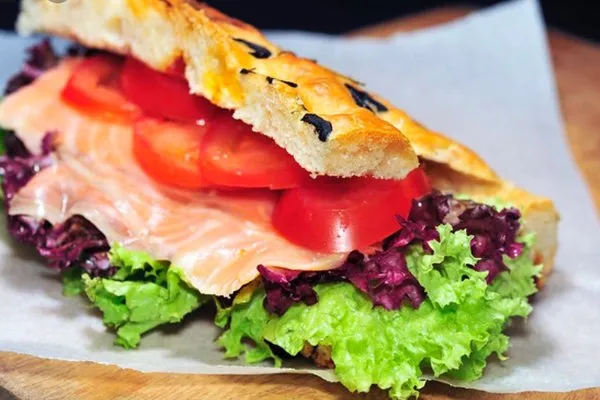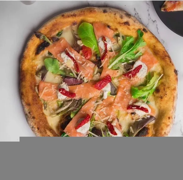 Homemade mozzarella cheese, Italian basil, organic cherry tomato, marinated salmon, fresh rocca, sun dried tomato and topped with parmesan cheese