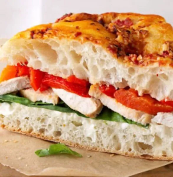 Sapori pesto sauce, marinated chicken, organic cherry tomato and homemade mozzarella cheese
