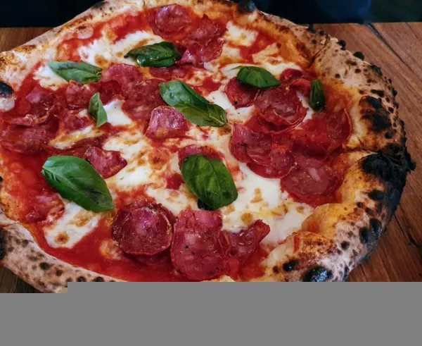 Superior pepperoni, Sapori tomato sauce, homemade mozzarella cheese, Italian basil and organic cherry tomato