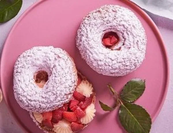 Crispy choux pastry filled with vanilla pastry cream and fresh strawberry