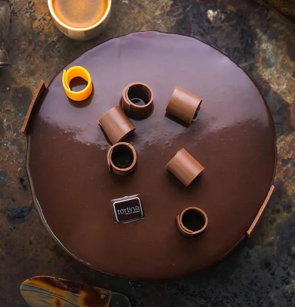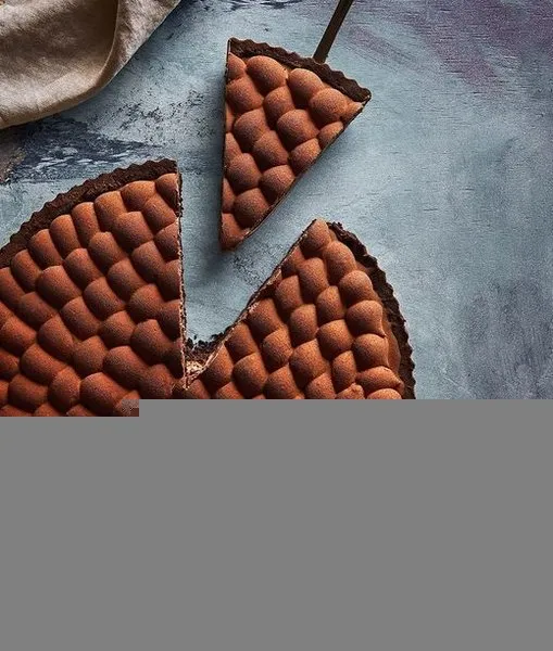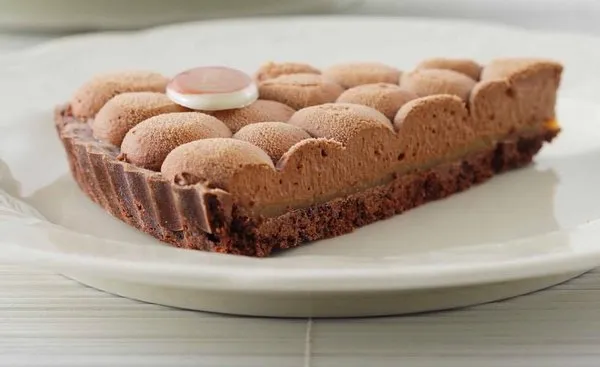 Chocolate sable crust, caramel sauce and chocolate ganache